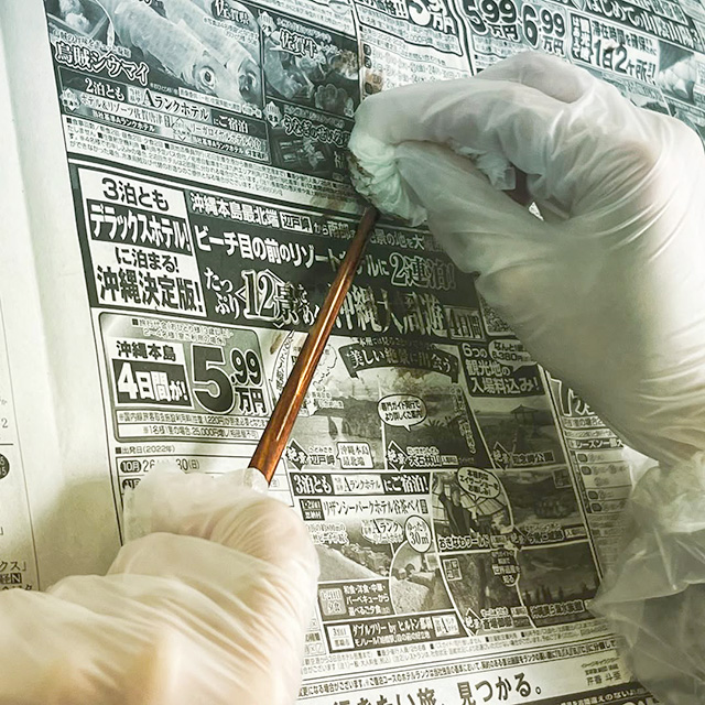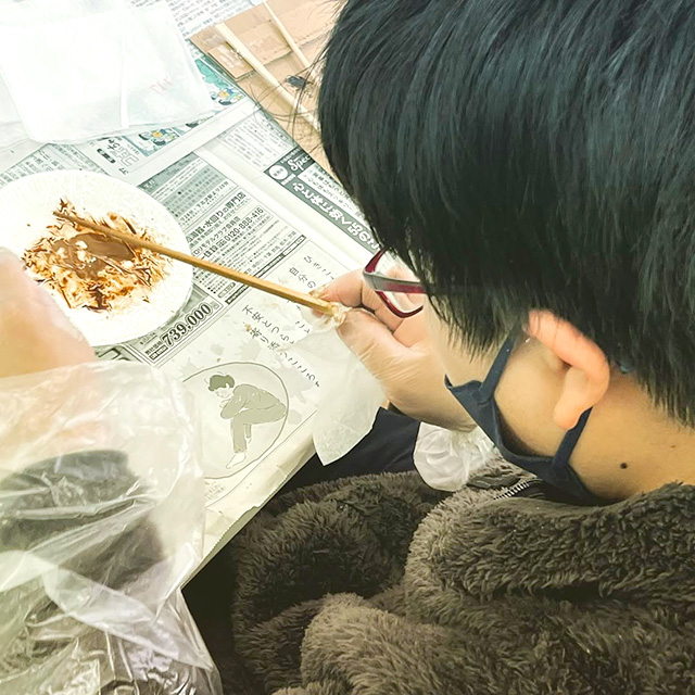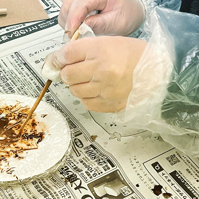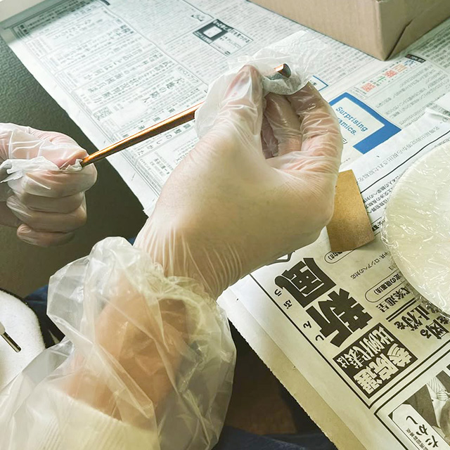 Denpukuのお箸は、訓練生たちが漆を一つひとつ丁寧に塗り重ね、包装まですべて手作業で仕上げています。